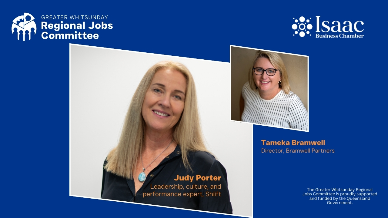 Join us for a special Small Business Month edition of the Greater Businesses series, delivered in partnership by the Greater Whitsunday Regional Jobs Committee (RJC) and the Isaac Business Chamber. This half-day event, The Resilient Workplace: Mastering Change & Retaining Talent, will equip business owners and professionals with practical strategies to strengthen team resilience, manage change fatigue, and build a thriving workplace culture.