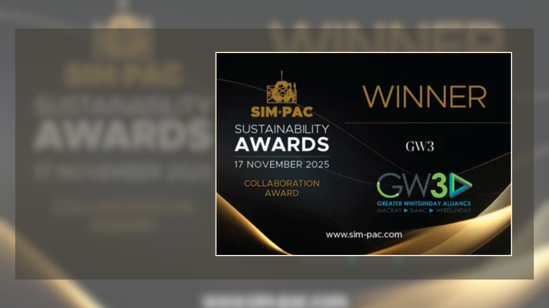 The Greater Whitsunday region’s commitment to collaboration, sustainability, and future-focused industry transformation has been recognised nationally, with Greater Whitsunday Alliance’s Decarbonisation Accelerated project winning the Collaboration Award at the 2025 SIM-PAC Live Sustainability Awards in Brisbane.